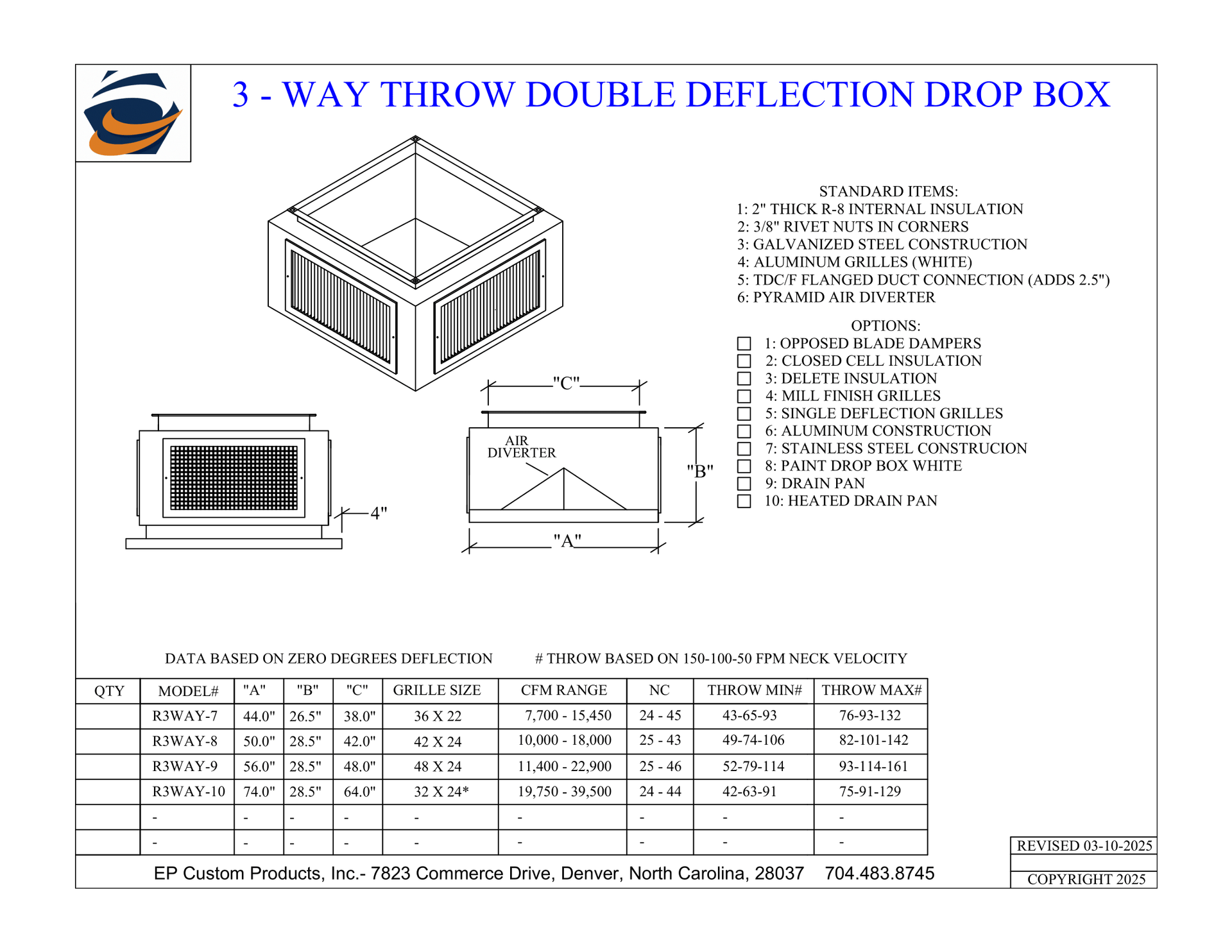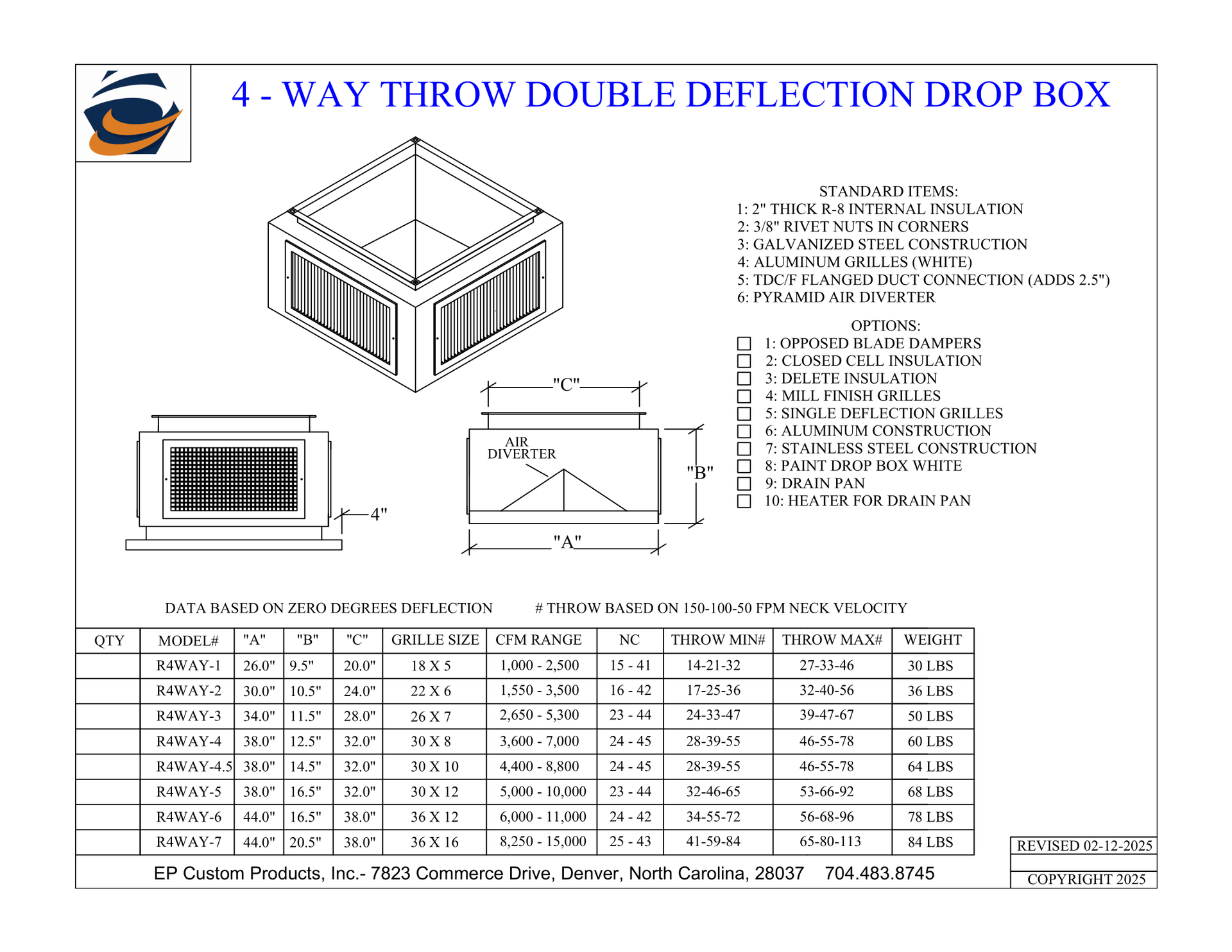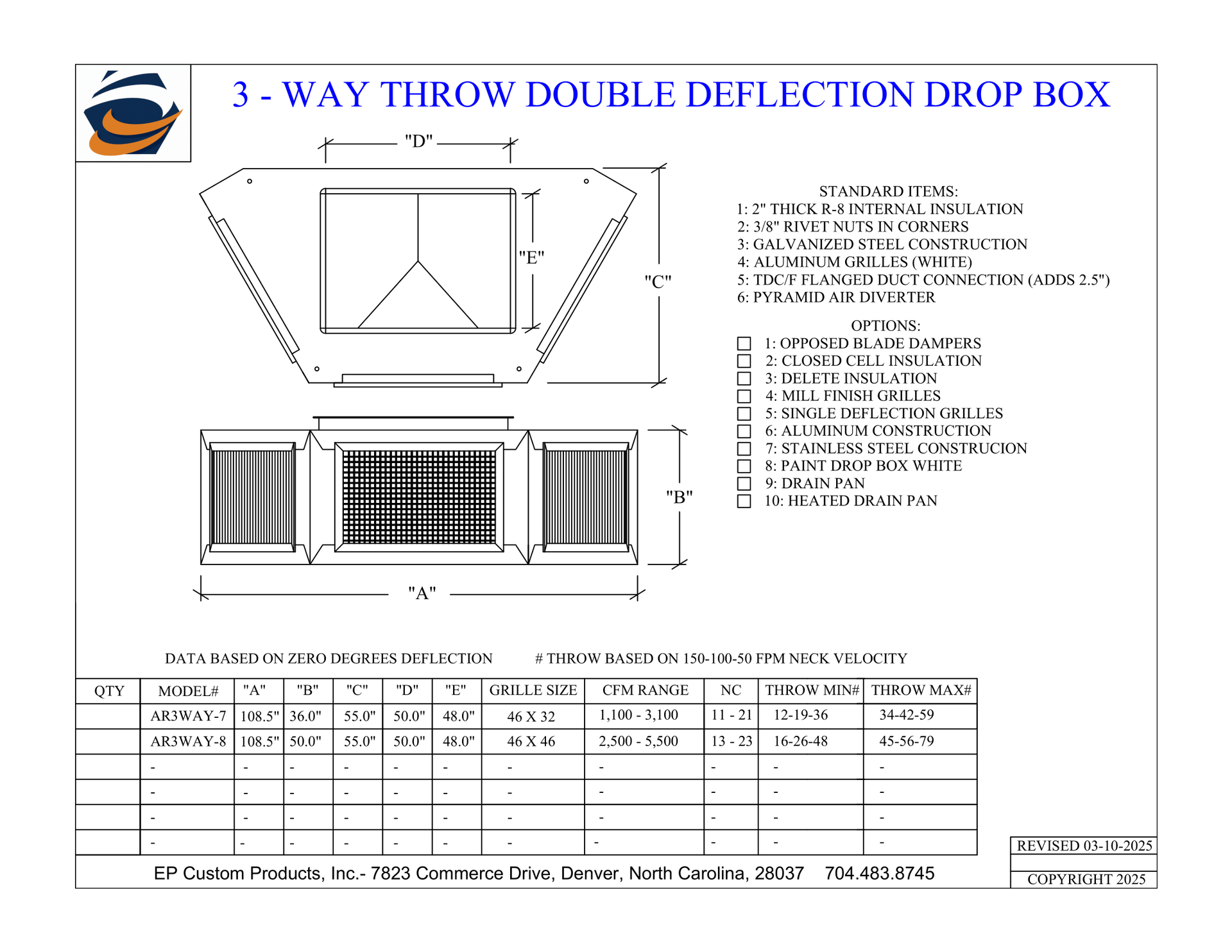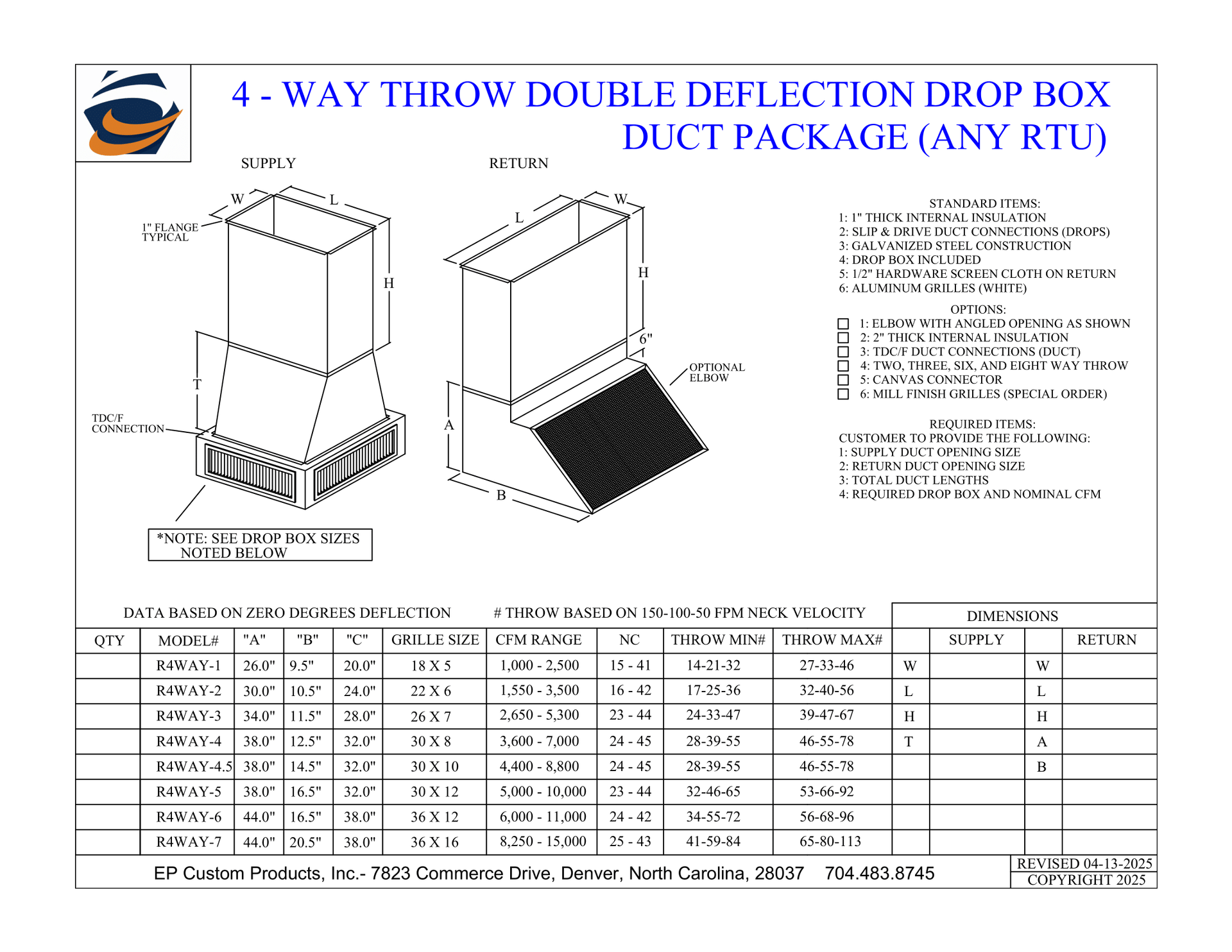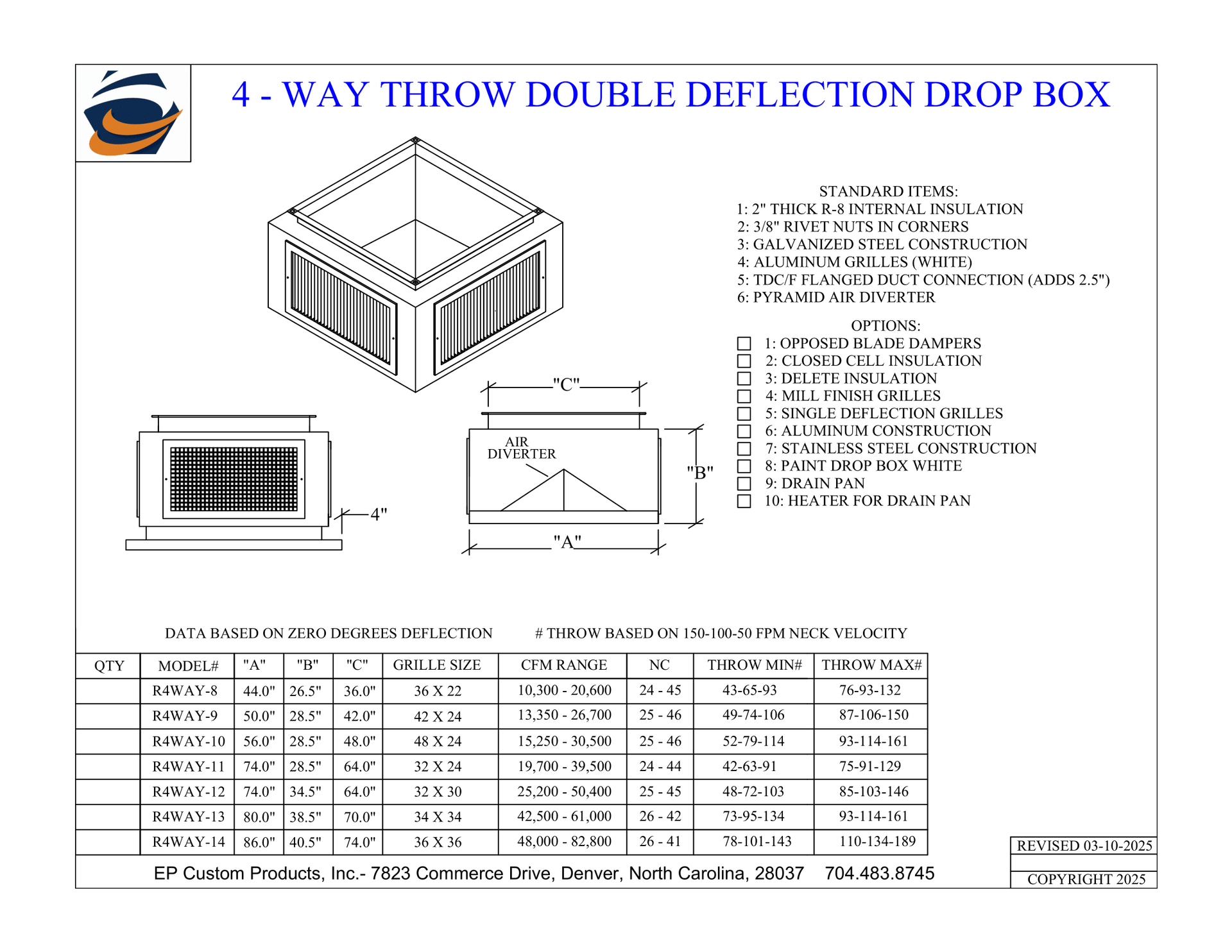 When you need total control over airflow direction and volume, EP Custom Products delivers with our Double Deflection Drop Boxes. Designed for versatility and engineered for strength, these units are the go-to solution for commercial and industrial HVAC applications that demand performance and adjustability.