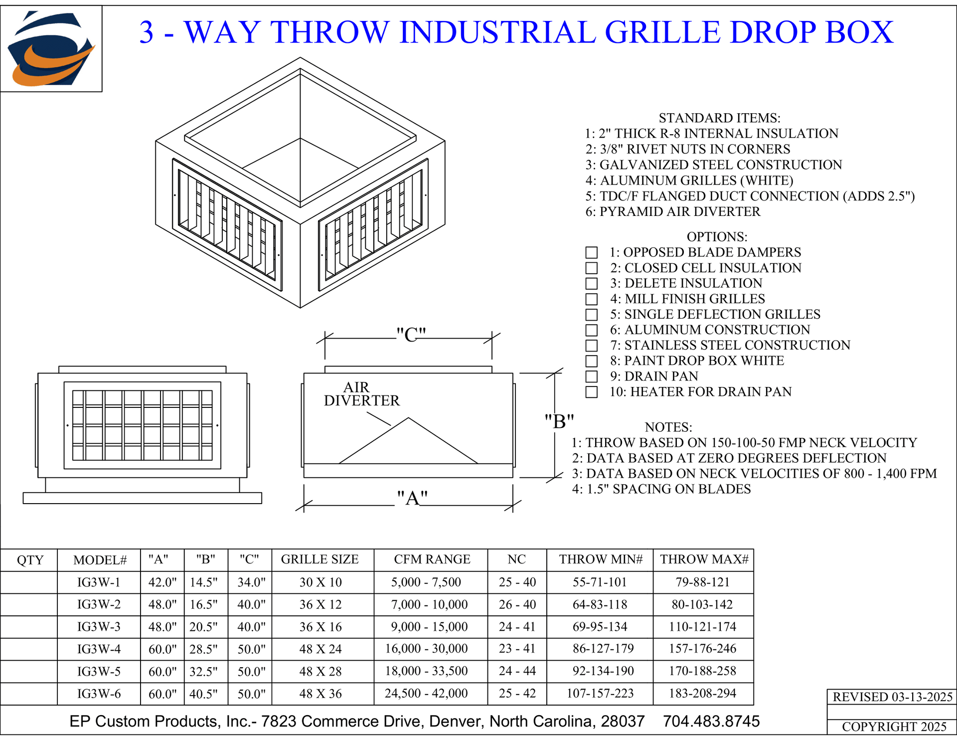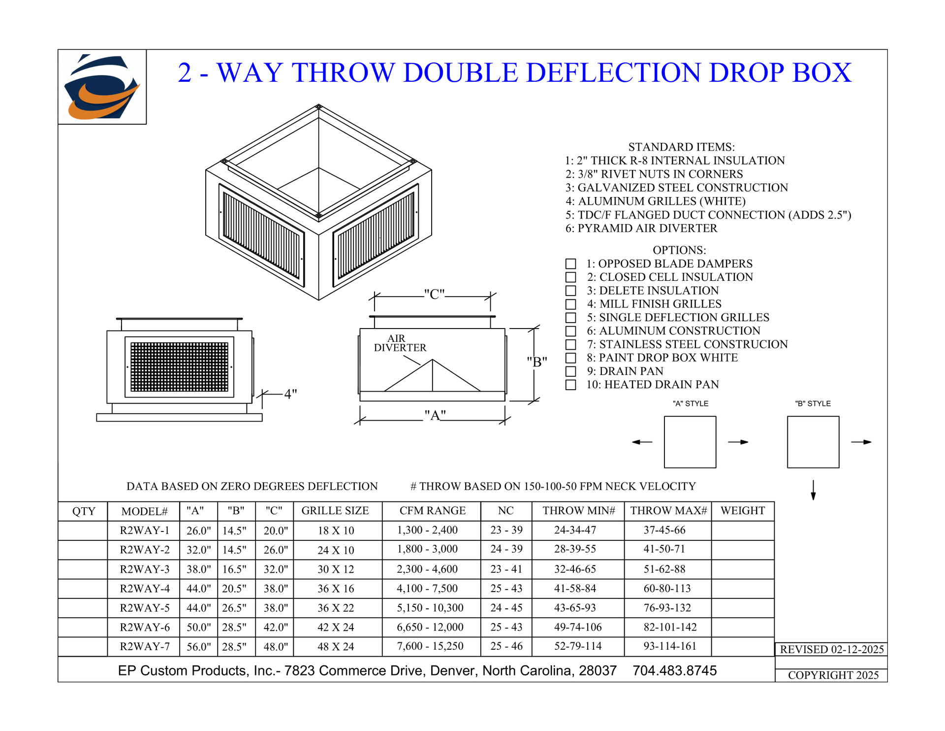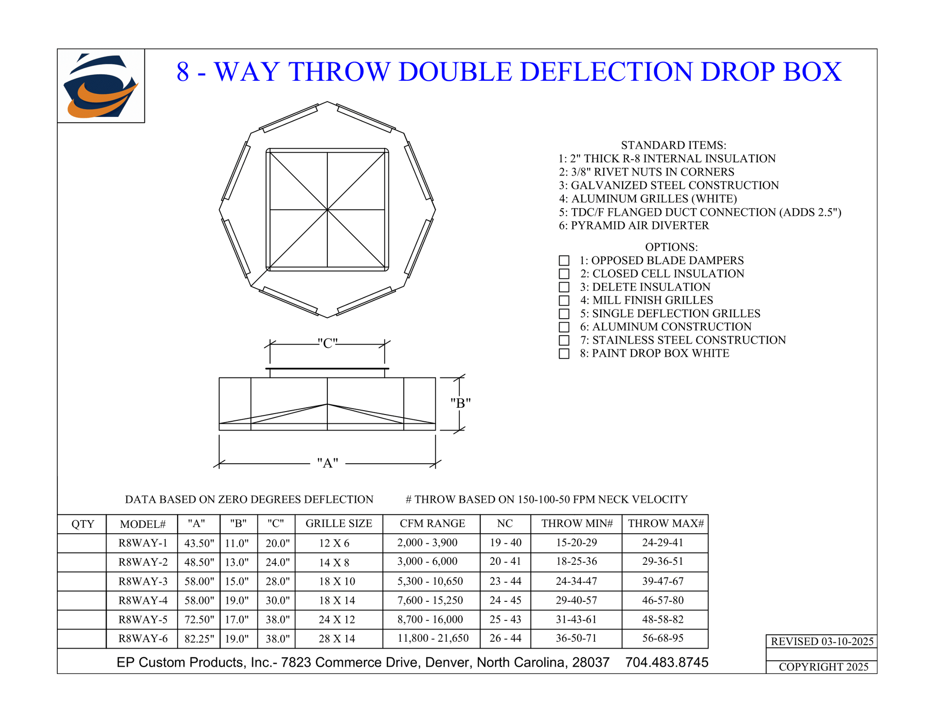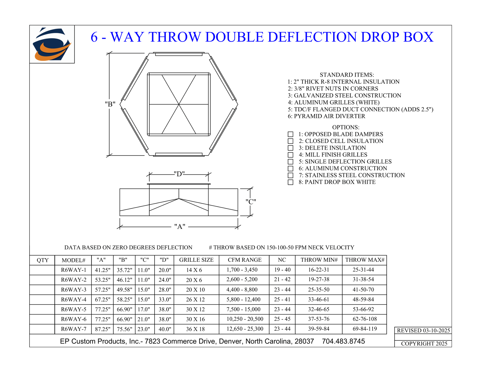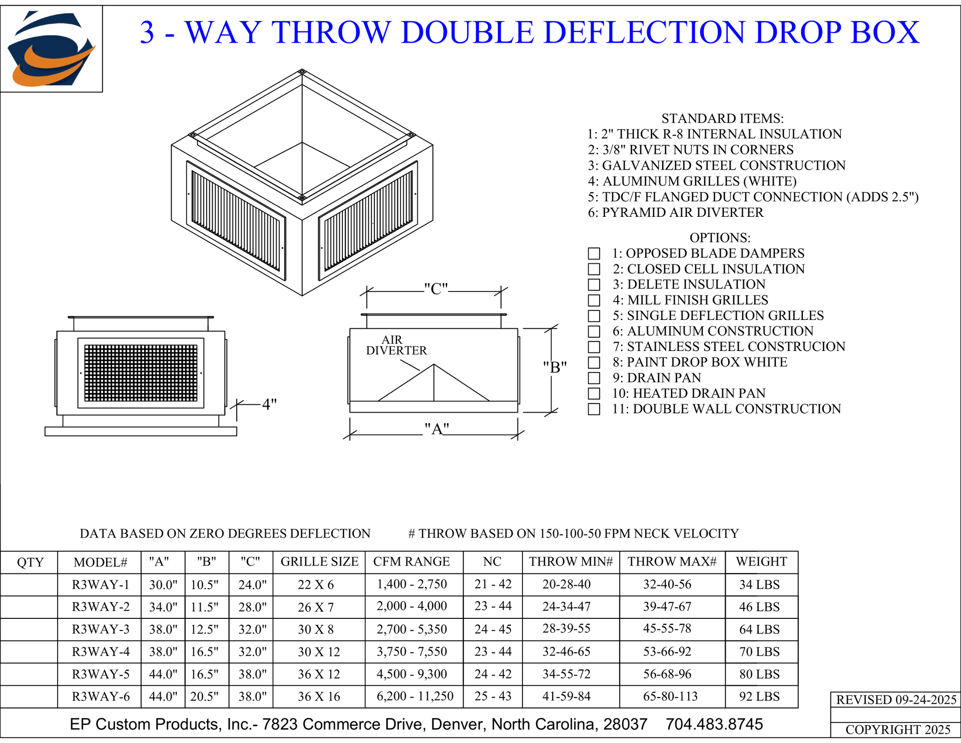 When you need total control over airflow direction and volume, EP Custom Products delivers with our Double Deflection Drop Boxes. Designed for versatility and engineered for strength, these units are the go-to solution for commercial and industrial HVAC applications that demand performance and adjustability.